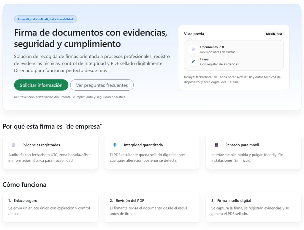 Descubre la nueva app de firma de documentos por enlace de netPrevencion: firma electrónica segura, trazable y con validez legal, sin instalar nada.