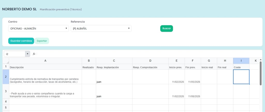 Nueva herramienta en netPrevencion para rellenar y actualizar la planificación de medidas desde el Portal de Cliente, sincronizada en tiempo real con la Evaluación de Riesgos.