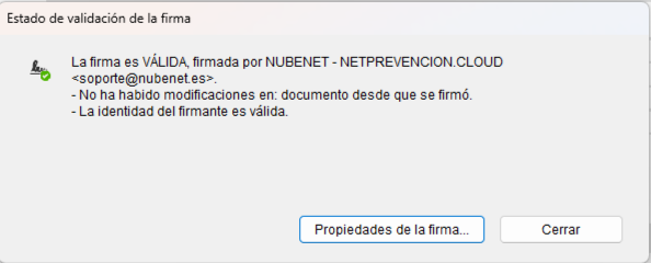 En netPrevencion todos los documentos que envíe a sus clientes, se firman automáticamente mediante un certificado autogestionado. Esta firma aporta autenticidad y trazabilidad, suficiente para procesos internos.